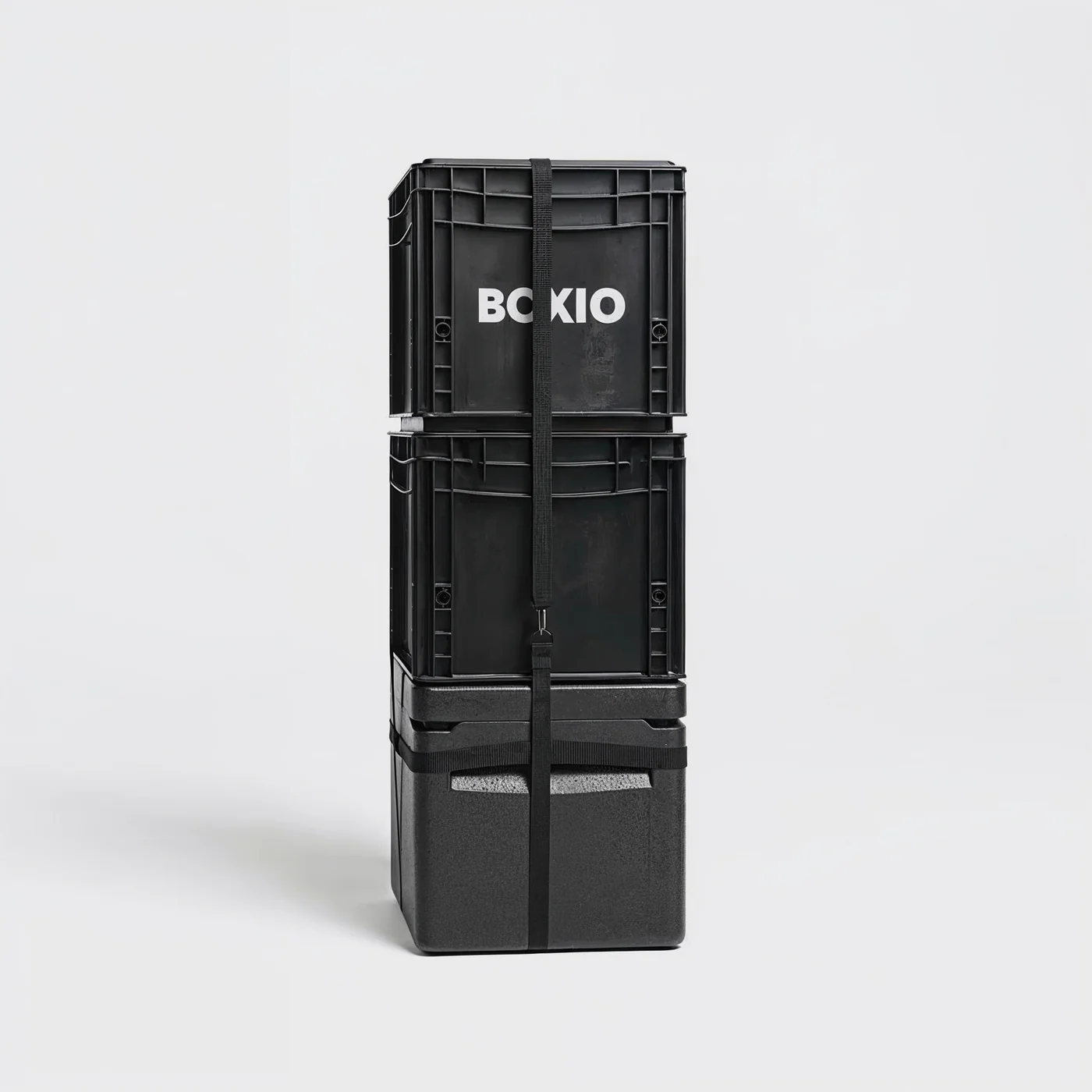 - Elastyczny system nośny – umożliwia przenoszenie 1–3 pojemników BOXIO Eurobox