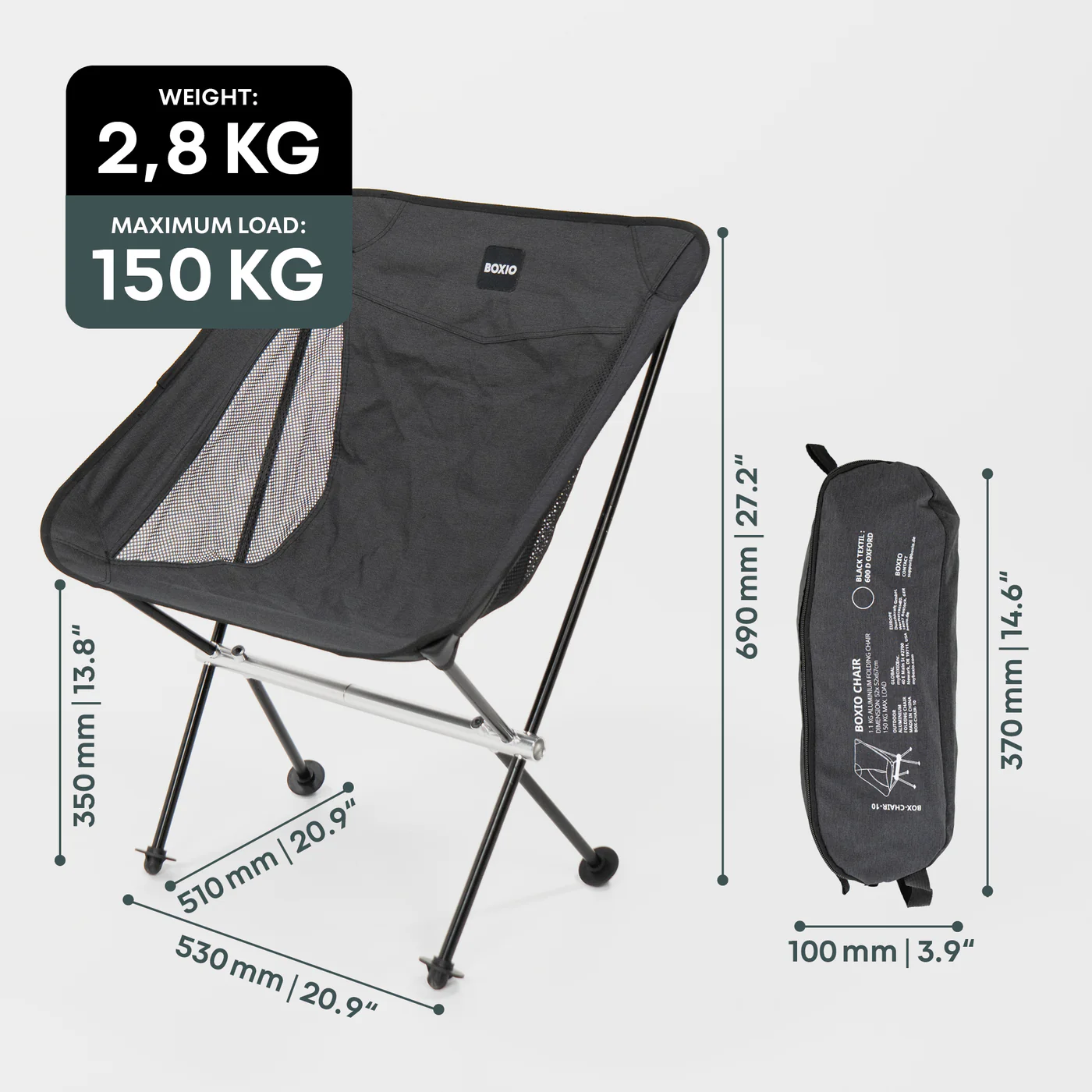 BOXIO CHAIR to Twoje idealne krzesło kempingowe – ultralekkie i kompaktowe, mieści się wygodnie w Euroboxie. Niezależnie od tego, czy podróżujesz kamperem, jesteś na festiwalu czy łowisz ryby, niska waga sprawia, że krzesło staje się niezastąpionym towarzyszem w podróży. Wysokiej jakości aluminiowa rama zapewnia trwałość i odporność na rdzę.