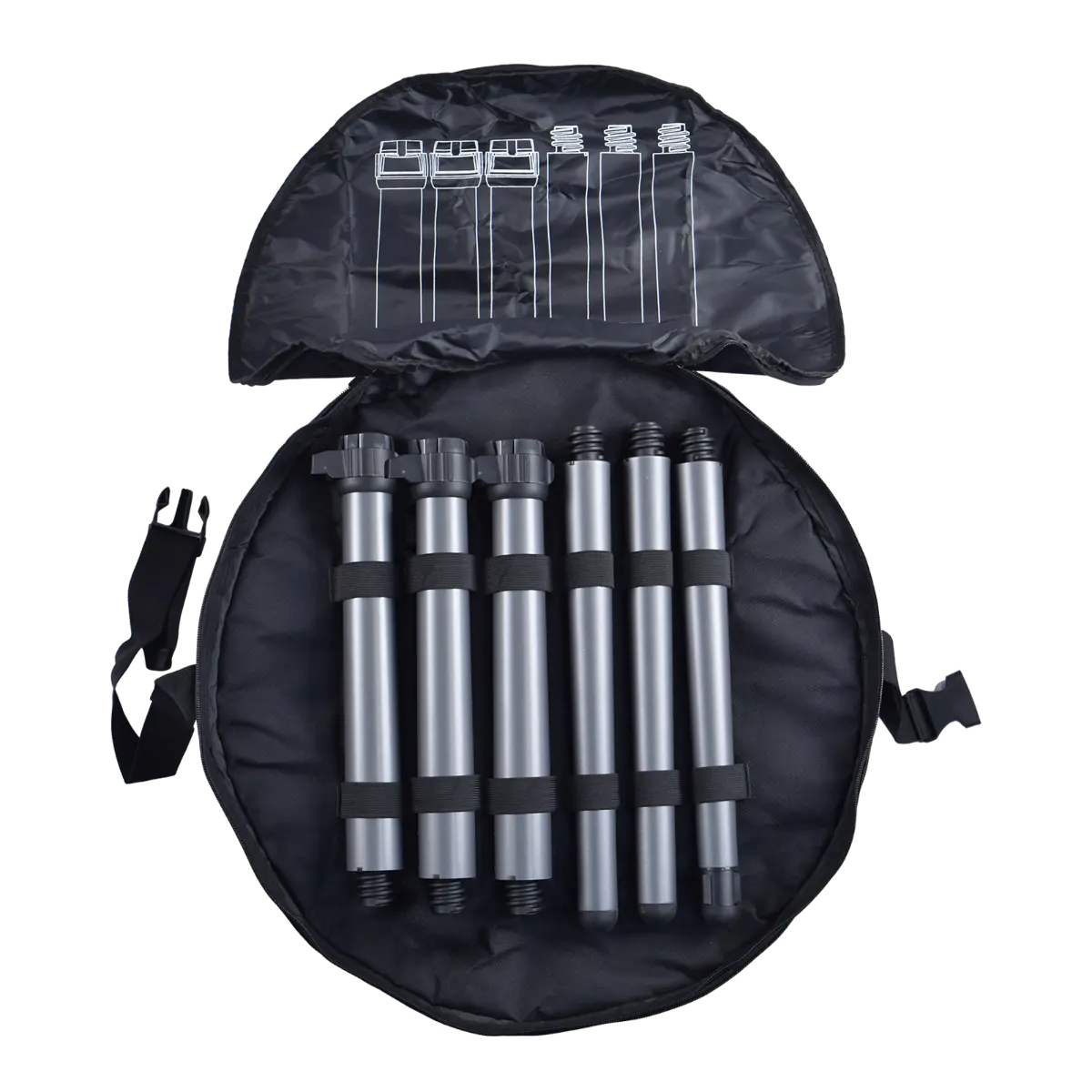 Wyjmowana tacka na tłuszcz ułatwia czyszczenie, a grill można w prosty sposób zdemontować. Aluminiowe, dwuczęściowe nóżki można odkręcać, co umożliwia łatwe przechowywanie grilla w dołączonych torbach transportowych.