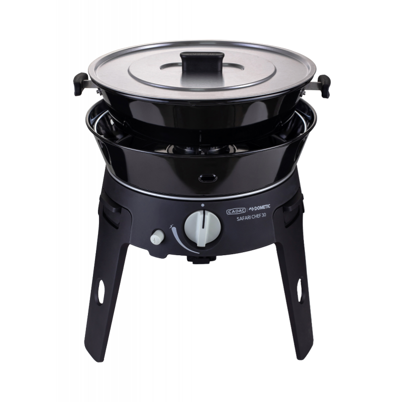 Safari Chef 30 to niewielki, a jednocześnie bardzo wszechstronny grill gazowy, stworzony z myślą o podróżach i wakacyjnych wyjazdach. W tej wersji urządzenie wyposażono w popularną patelnię do paelli 30 z pokrywą ze stali nierdzewnej, a także ruszt grillowy oraz podstawkę pod garnek. Niska waga wynosząca jedynie 4,5 kg sprawia, że grill można łatwo transportować i używać w dowolnym miejscu.