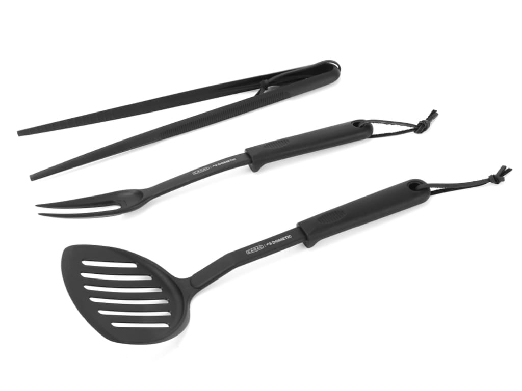 Dzięki temu zestawowi narzędzi do grillowania, wykonanemu z tworzywa odpornego na działanie wysokich temperatur (do 270°C), przygotowywanie dań na grillu stanie się prawdziwą przyjemnością. Szpatułka, szczypce i widelec pozwalają łatwo przyrządzać różnorodne potrawy, a jednocześnie chronią powłokę GreenGrill CADAC przed zarysowaniami i uszkodzeniami.