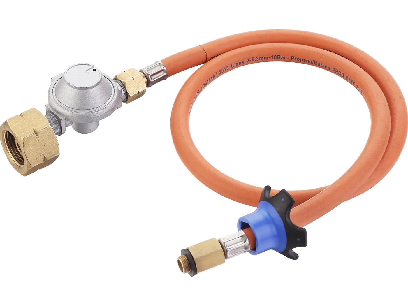 Zestaw z adapterem HP do LP umożliwia podłączenie urządzenia na wysokie ciśnienie (HP), np. CADAC Safari Chef HP, do wielorazowej butli gazowej (LP). Długość węża to 85 cm.